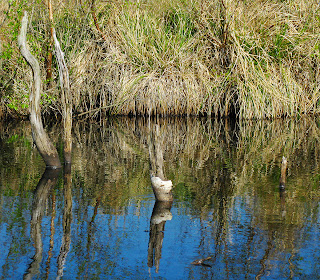 Auf den Tümpeln tummeln sich allerlei Wasservögel. Es soll im Moor sogar Kraniche geben. Leider hatte ich kein Fernglas mit!